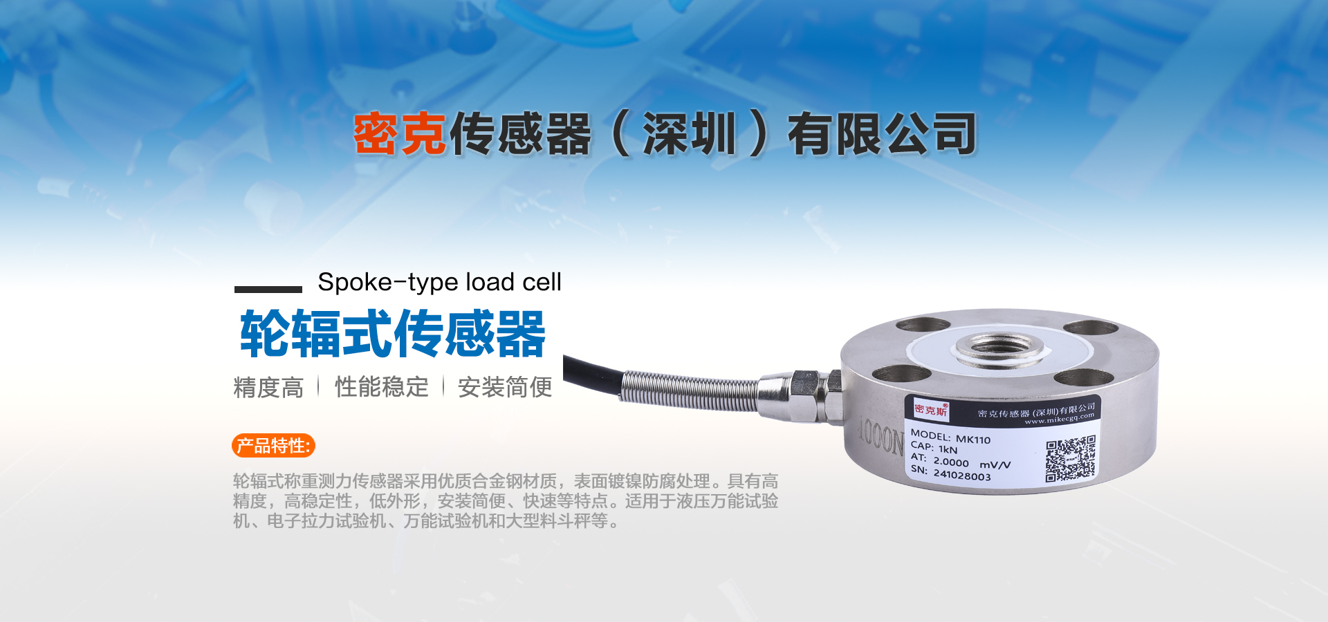 密克傳感器(深圳)有限公司主要生產(chǎn)的產(chǎn)品有測力傳感器、稱重傳感器、拉力傳感器、壓力傳感器、扭矩傳感器,多維力傳感器,電子引伸計等各類力學(xué)和稱重傳感器、及其配套儀器儀表和模塊附件的工廠。